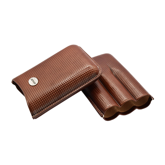 Brown leather cigar case for 3 Robusto/Edmundo size cigars.
